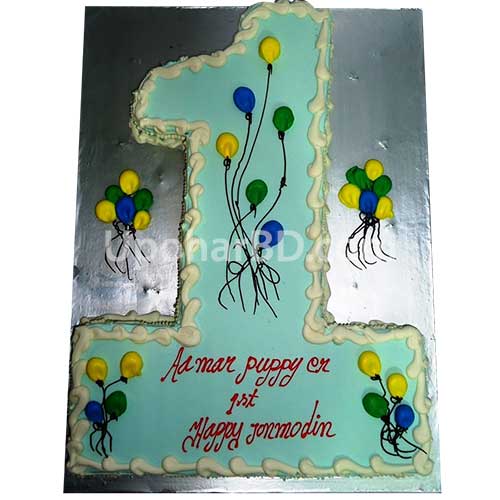 Cake for first birthday party in Bangladesh. Price is shown for 2 kg (4 pound - minimum weight for this cake) Single number shape Vanilla cake with special art and design from 'Yummy Yummy'.…Details