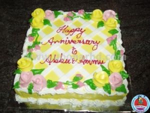 Price is shown for 1.5 kg (3 pound - minimum weight for this cake) square shape vanilla cake designed with with stripes and roses. This cake is also available in bigger size and different flavor - Chocolate, Blackforest and Mix-Flavor (layer of chocolate and layer of vanilla). Please select the required weight and preferred flavor, then Add this product to the Shopping Basket. Delivery to Dhaka is free and 'Shipping Charge' applies for other cities as it has to be transported from Dhaka via air-conditioned service. This product is not available for same day delivery and it needs to be ordered by Dhaka time 3PM on the day before delivery date. Order Cake from Mr. Baker or Kings for urgent orders.