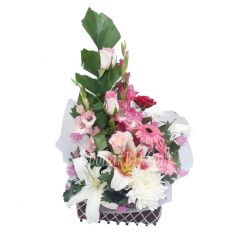 This elegant natural rose, gerbera and lilies with seasonal leaves arrangement in a vase can surely impress your loved ones. You can order it for any occasions like birthday, anniversary day, mother’s day etc. It will go with-