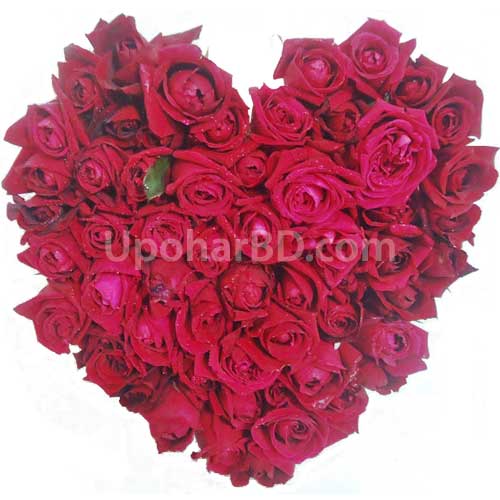 1. A large heart shape bouquet with 25-30 fresh red roses
