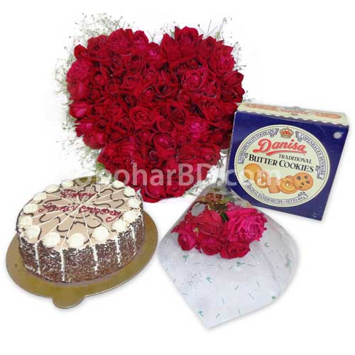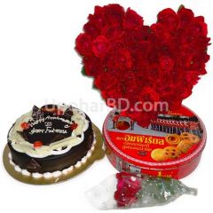 Home /Gift Packages for BD/Gift combo with 50 red rose in heart shape, cake and cookies