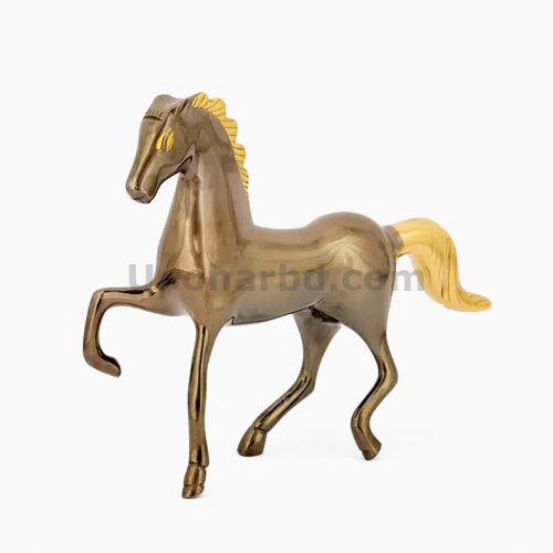 Oxidized brass made standing horse from Aarong. Length 20 cm, width 3.5 cm, height 16cm. If you set it on tabletop, it will enhance your home décor. It’s also perfect for gifting anyone.